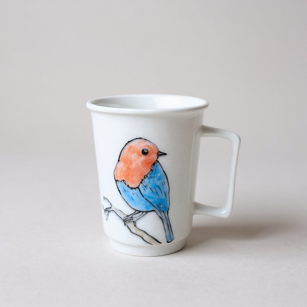 Porselen Kupa Mavi Kuş Desenli